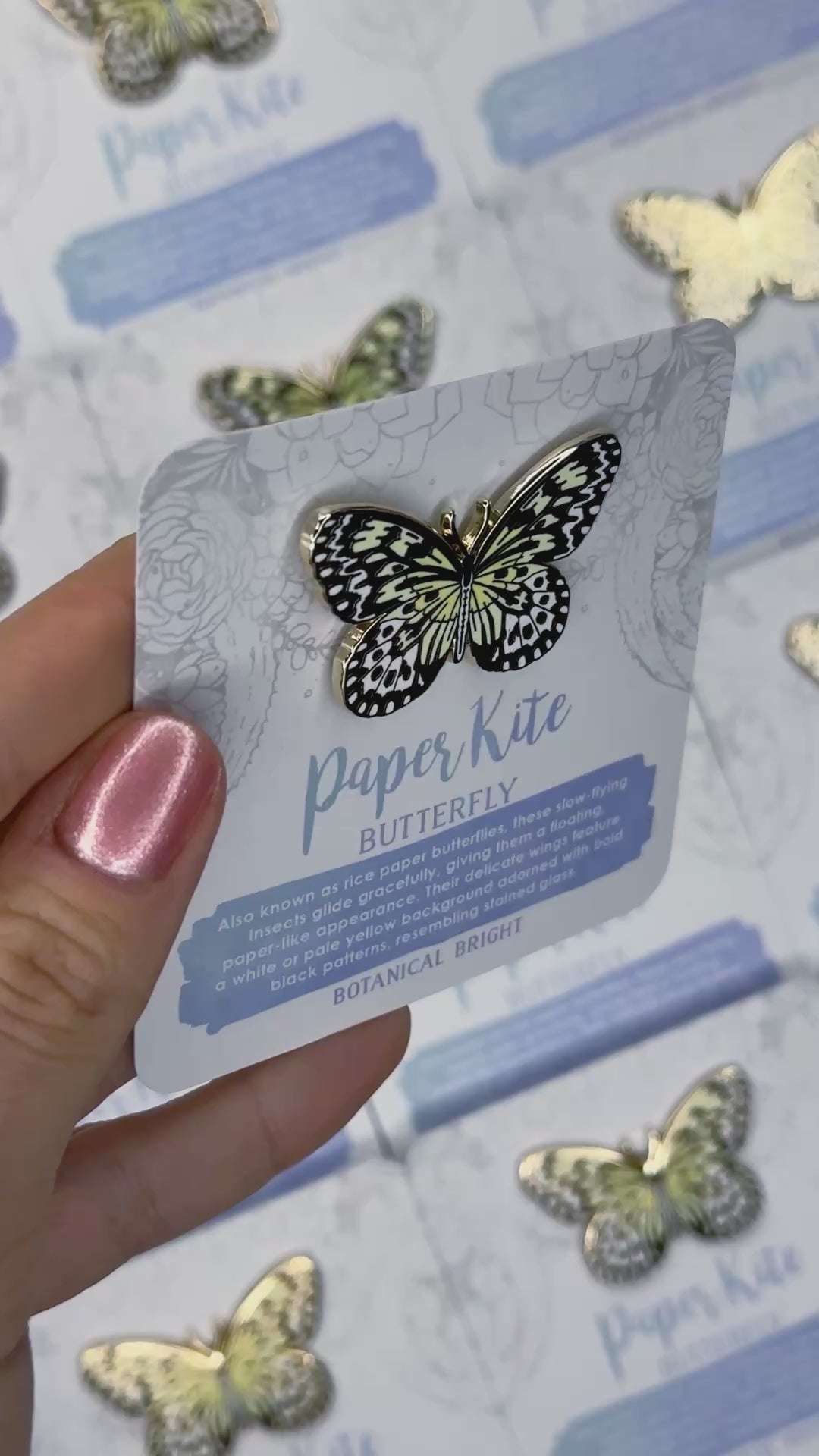 rice paper butterfly enamel pin, rice paper butterfly lapel pin, butterfly enamel pin, insect lover gift, nature lover gift, botanical garden gift shop