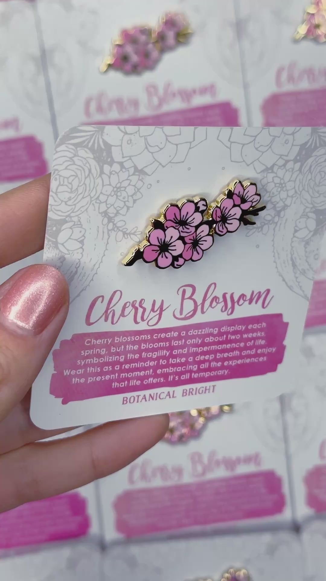 Cherry blossoms create a dazzling display each spring, but the blooms only last for about two weeks, representing the fragility and impermanence of life. Wear as a reminder to take a deep breath and enjoy the present moment, along with all the experiences — both good and bad — that life offers. This is all temporary.